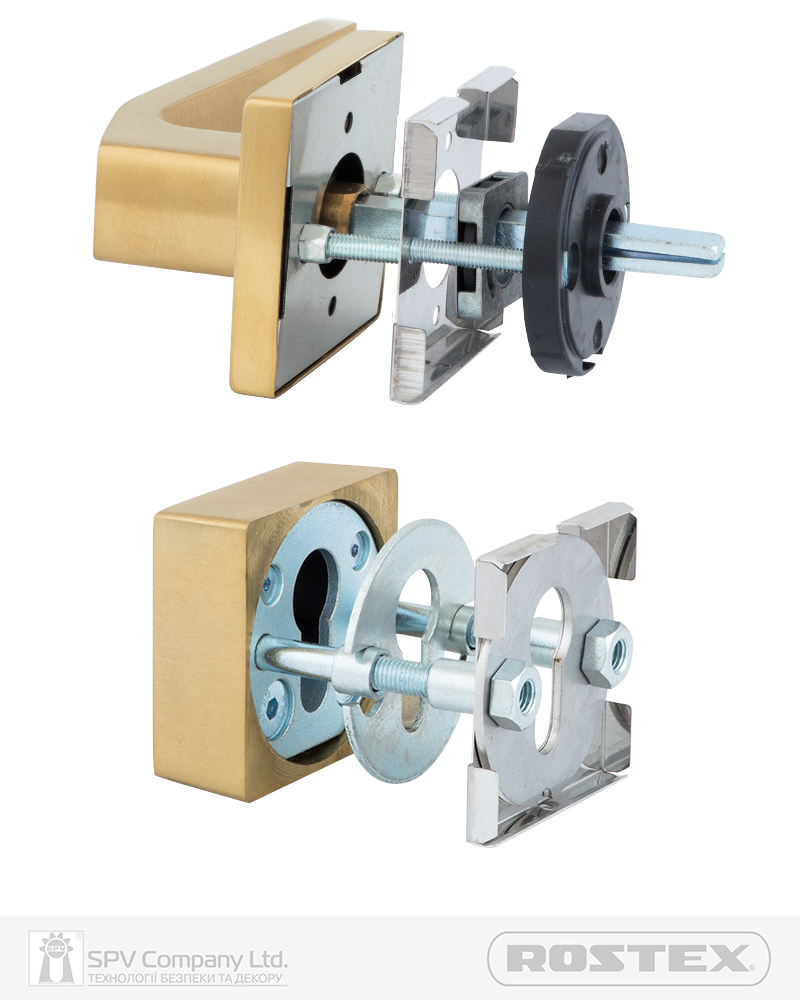 Фурнітура захисна ROSTEX R4/H QUADRUM до основних замків для вхідних металевих та деревяних дверей товщиною 38-45мм з можливістю подовження до 100мм (комплекти подовження замовляються окремо). З-й клас безпеки. Матеріал: нержавіюча сталь. Загартований протектор циліндра із захистом від висвердлювання. Кріплення - болти М5/М7.