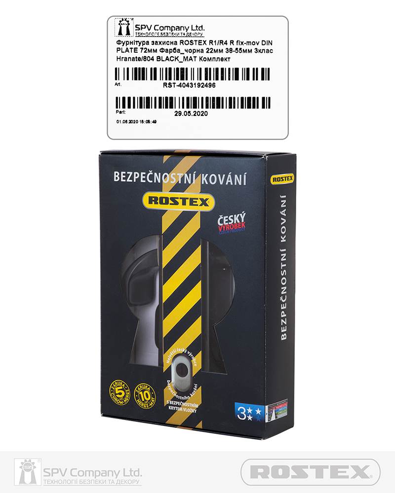 Фурнітура захисна ROSTEX R1 до основних замків для вхідних металевих, деревяних та профільних дверей товщиною 38-55мм з можливістю подовження до 100мм (комплекти подовження замовляються окремо).