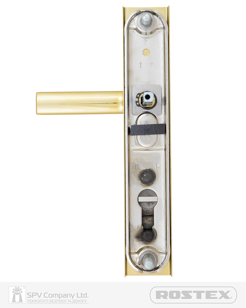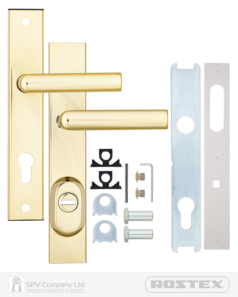Фурнітура захисна ROSTEX R4 до основних замків для вхідних металевих, деревяних та профільних дверей товщиною 38-55мм з можливістю подовження до 100мм (комплекти подовження замовляються окремо). З-й клас безпеки. Матеріал: нержавіюча сталь, замак. Плата, що захищає корпус замка. Загартований протектор циліндра із захистом від висвердлювання. Кріплення - болти М8.