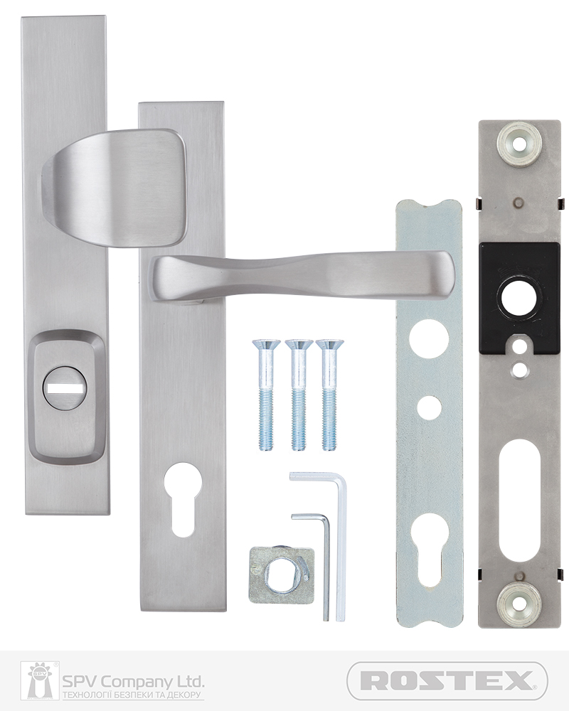 Фурнітура захисна ROSTEX RN1/RN4 до основних замків для вхідних металевих, деревяних та профільних дверей товщиною 38-50мм з можливістю подовження до 100мм (комплекти подовження замовляються окремо).