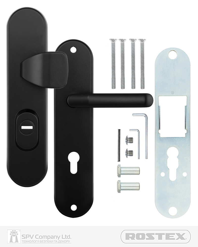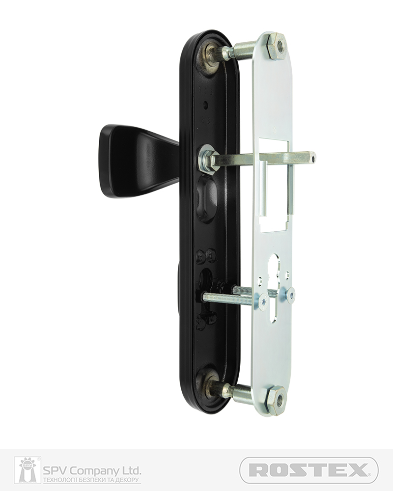 Фурнітура захисна ROSTEX UNIVERSAL_PLUS до основних замків для вхідних металевих та деревяних дверей товщиною 38-55мм з можливістю подовження до 100мм (комплекти подовження замовляються окремо).