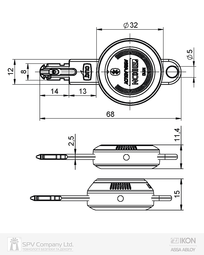 - Передача даних та живлення до циліндра здійснюється за допомогою безпосереднього контакту при вставленні ключа від батарейки яка встановлена в головці ключа