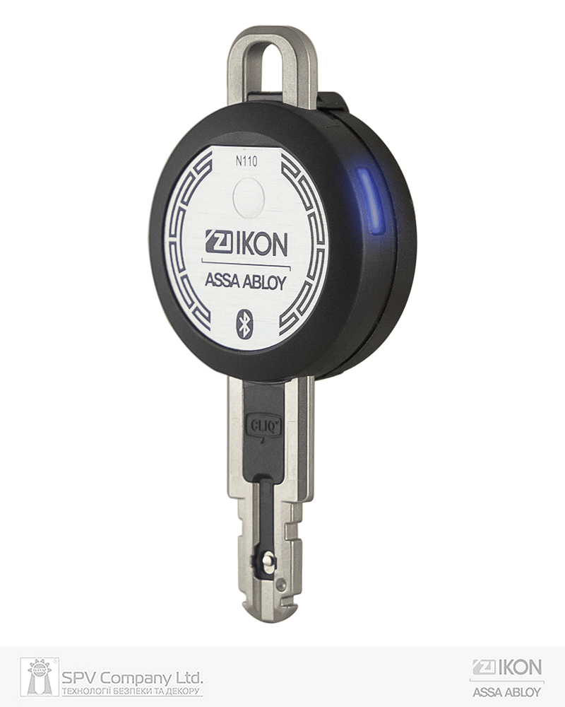 Bluetooth® (BLE) ключа для зв’язку з додатком CLIQ Connect та обміном інформацією з базою даних вмикається за допомогою кнопки в головці ключа (час активності Bluetooth ключа 30 секунд). Завдяки цьому значно збільшений ресурс функціонування ключа до заміни батарейки.