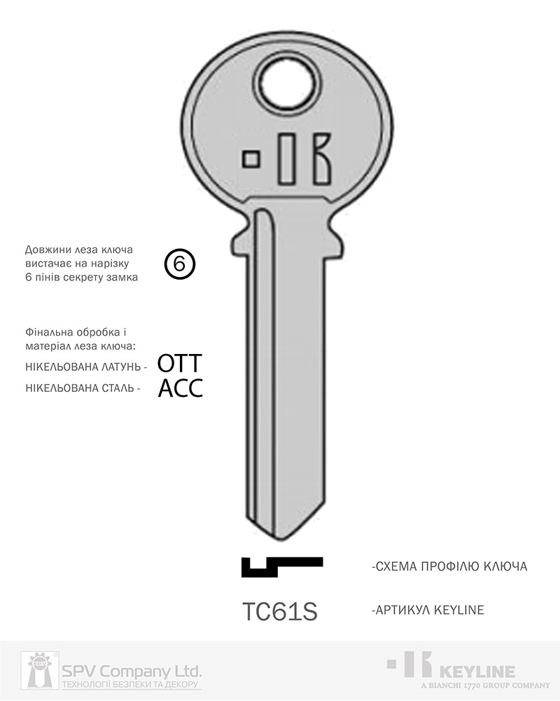 Бланк ключа KEYLINE англійського профілю до циліндрів TRI-CIRCLE.