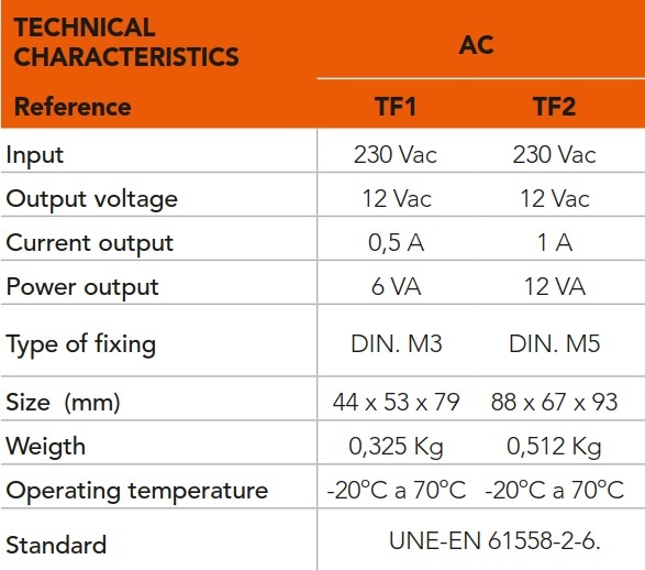 • вихідна напруга 12 В змінного струму, максимальний струм навантаження 1А, 12VA