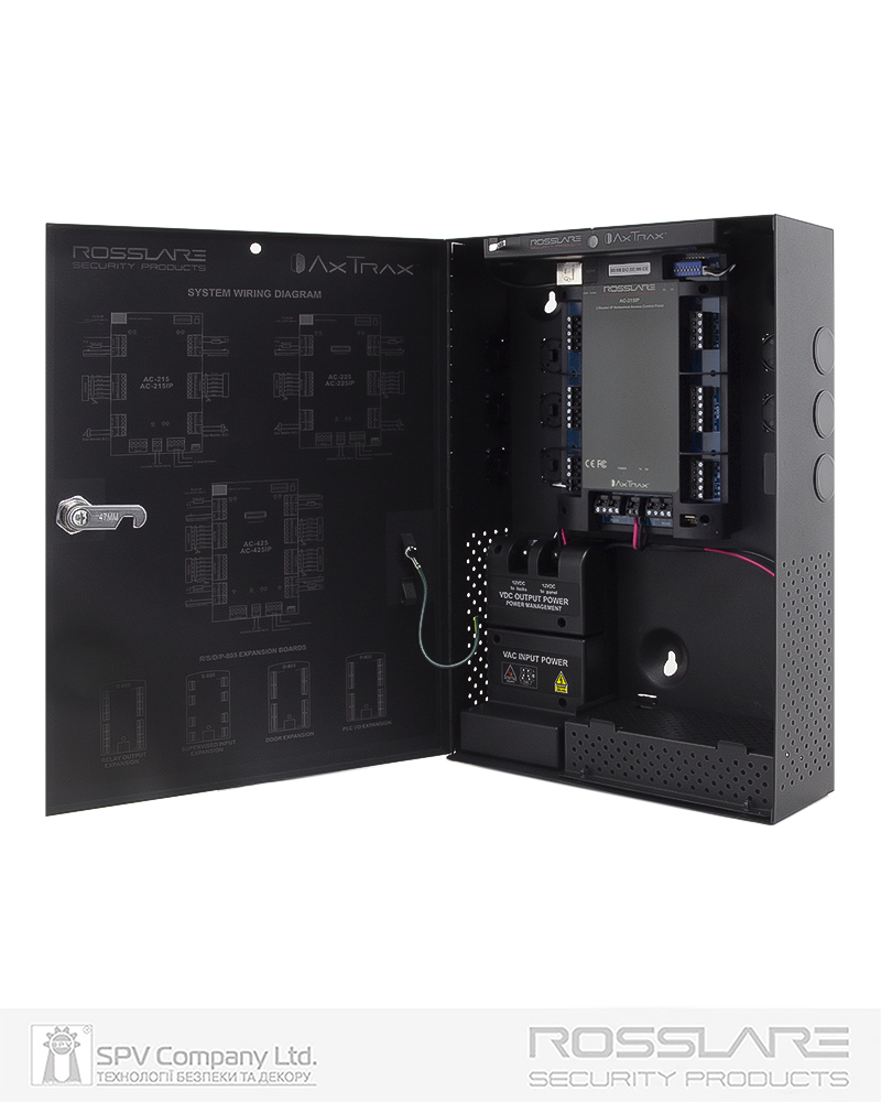 Мережевий електронний контролер ROSSLARE AC-215IP-BE розрахований на підключення 2 (двох) зчитувачів та має можливість керувати або одними дверима на вхід та вихід, або двома дверима тільки вхід.