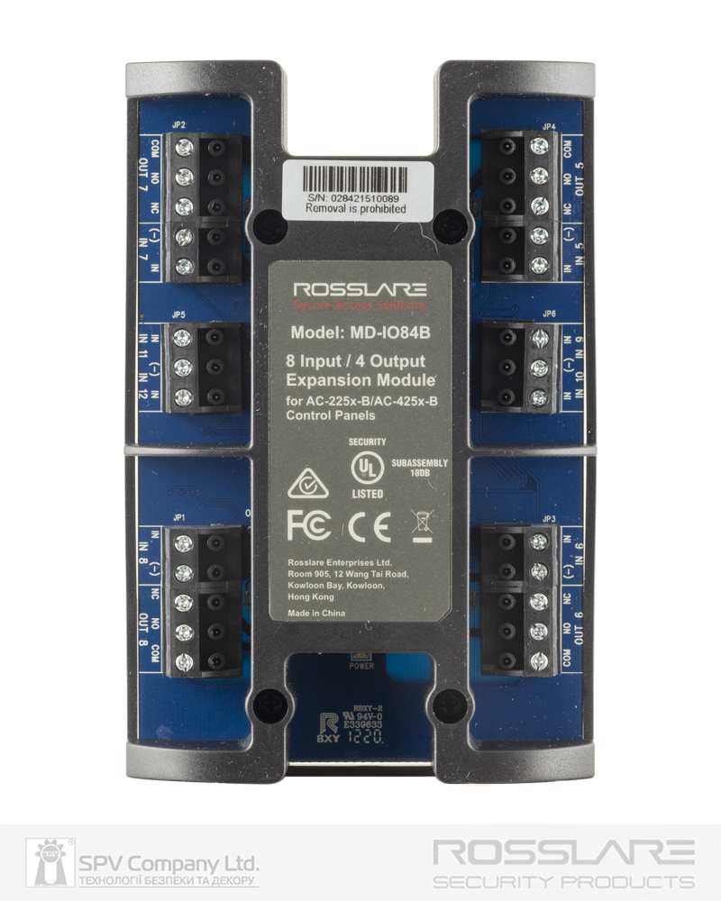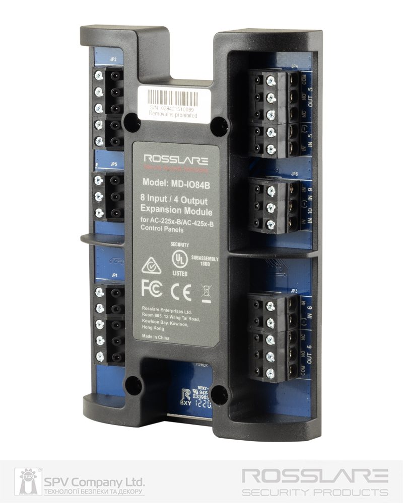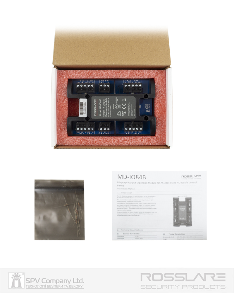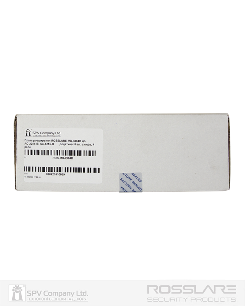 Плата розширення MD-IO84B від Rosslare — це плагінний модуль розширення для панелей контролю доступу AC-225x-B і AC-425x-B від Rosslare. Ця плата розширення вводу/виводу (Input/Output) додає 8 (вісім) контрольованих виходів та 4(чотири) релейні виходи (5 А, форма C NO/NC). Встановлення модуля в індивідуальний порт розширення на контролерах займає менше однієї хвилини з автоматичним розпізнаванням.