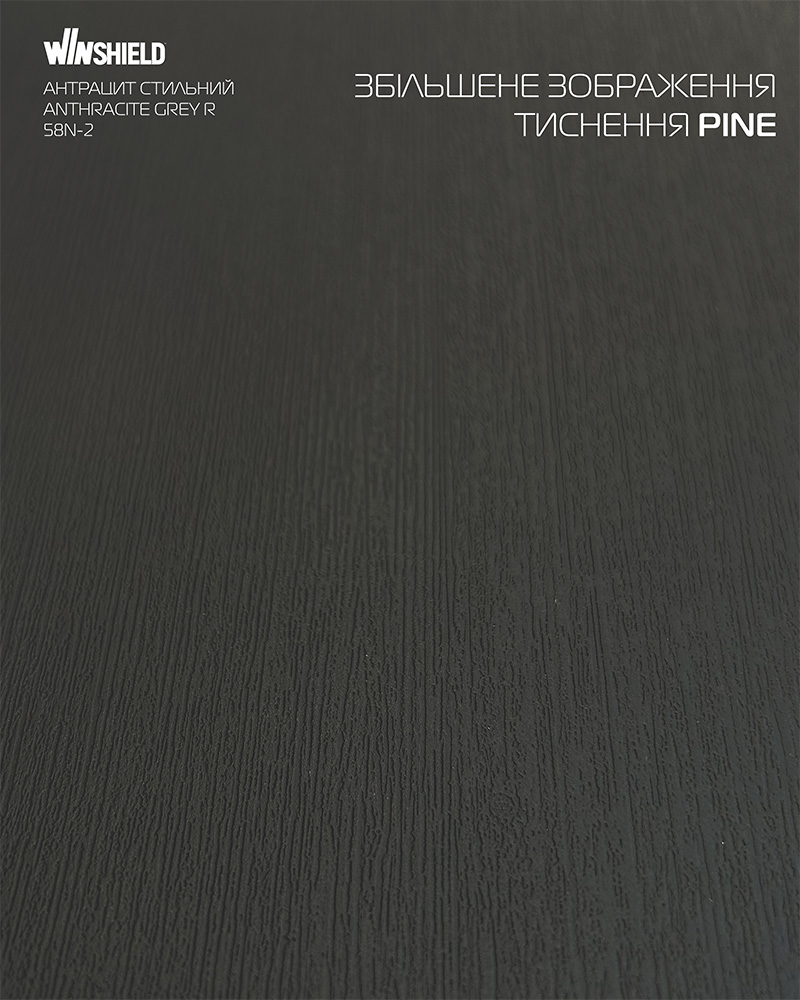 Дизайн: Найпопулярнійший колір антрацит в новій інтерпритації! Завдяки тисненню PINE плівка має ультрамодну матову об`ємну структуру.