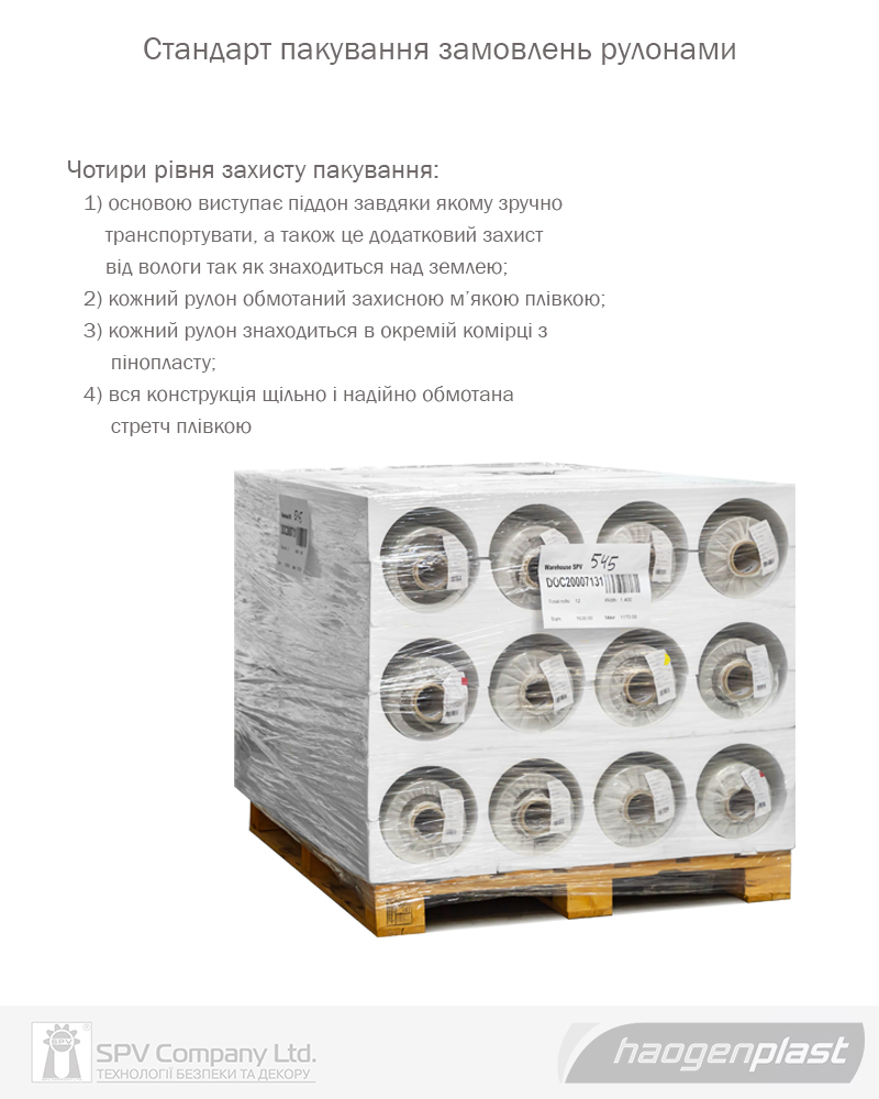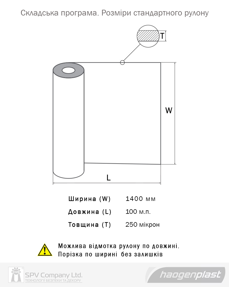 Рулони шириною 1500мм довжиною 250 м.п, товщина 0,200мм. Можлива порізка по ширині та довжині.