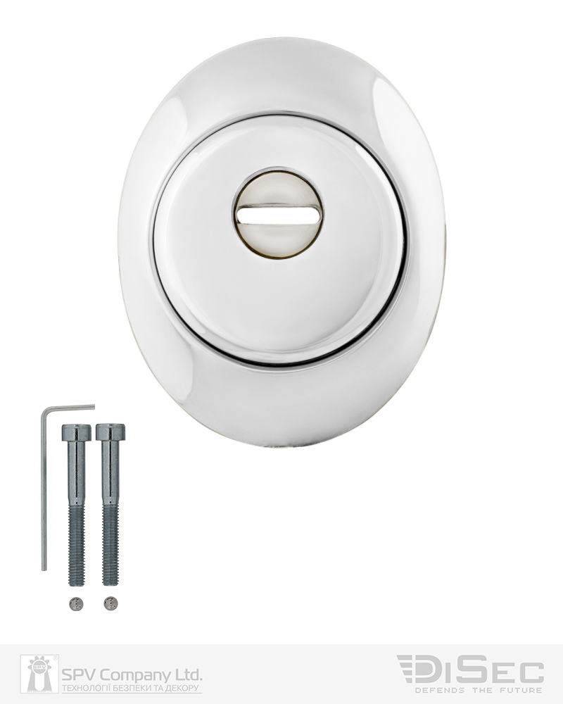Обробка хром полірований. Одна із найпоширеніших та найстійкіших обробок. Має поліровану дзеркальну поверхню сріблястого кольору. Добре виглядає як на темних так і на світлих дверях всіх кольорів. Підходить до всіх стилів інтер’єрів.
