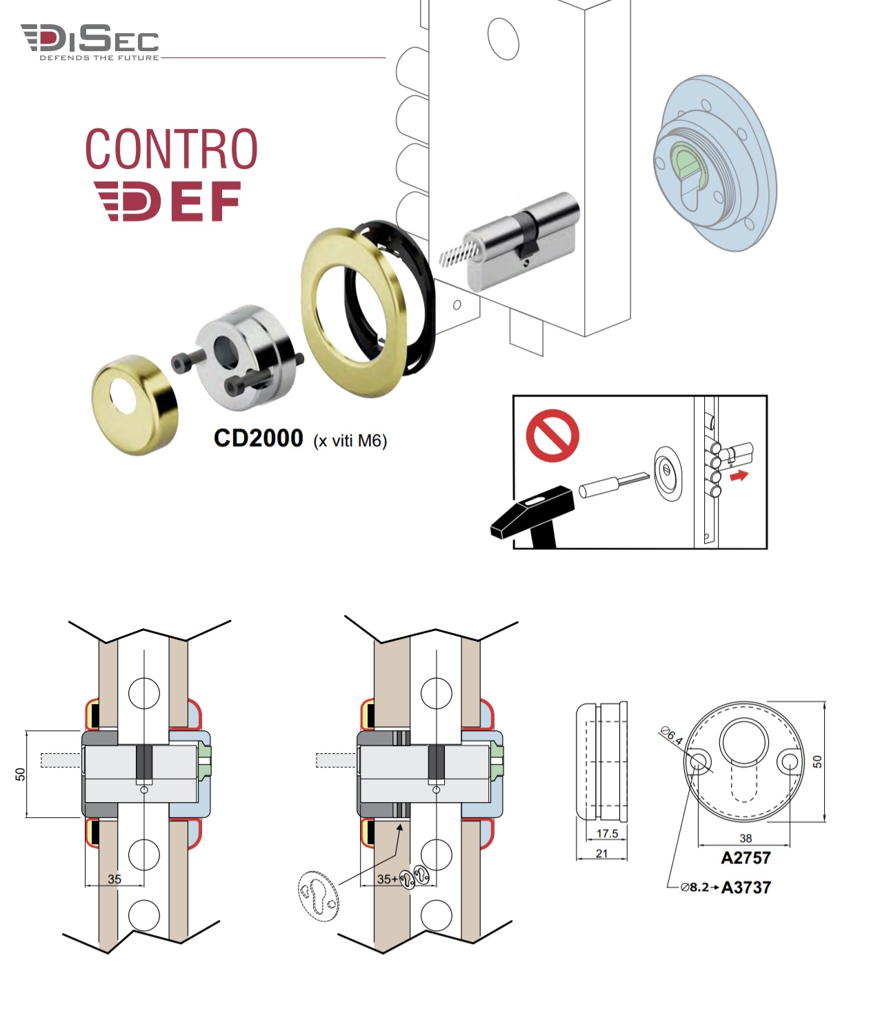 Захисний протектор моделі CONTRO CD2000 призначений для захисту циліндрового механізму стандарту DIN від вибивання.