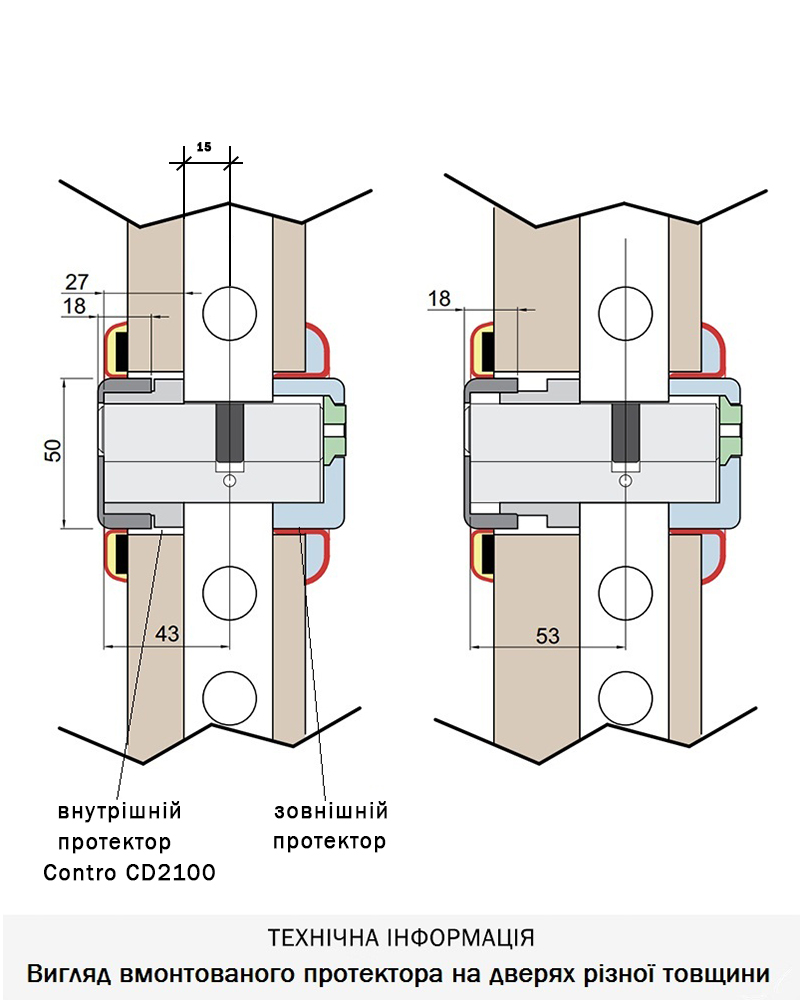 Встановлюється із внутрішньої сторони дверей. Зовнішній протектор замовляється окремо.