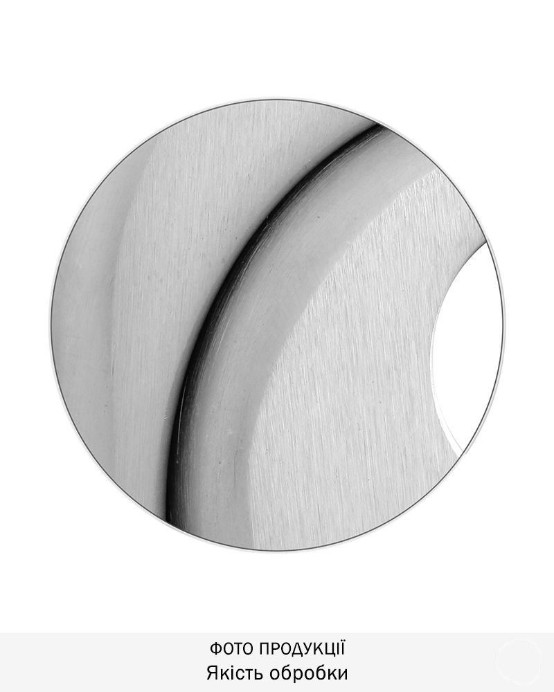 Обробка матова нержавіюча сталь, має холодний сталевий відтінок із матовою поверхнею, що царапана щіткою.