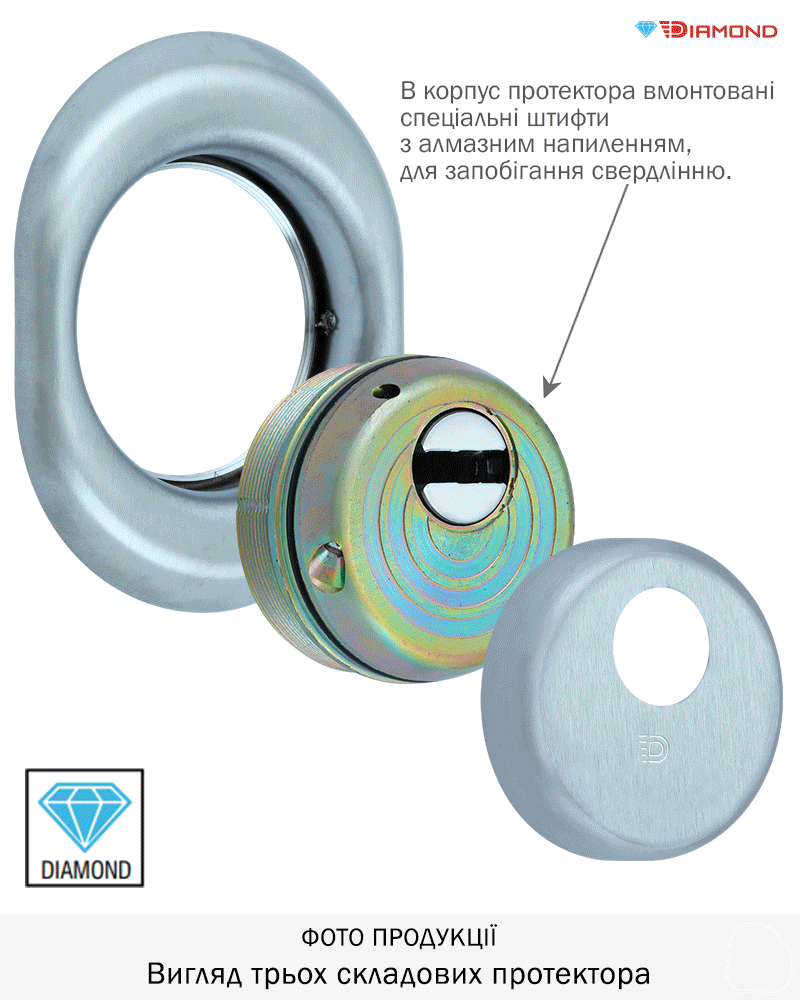 Захисний протектор моделі DIAMOND BKD250 призначений для захисту циліндрового механізму стандарту DIN від зламу.