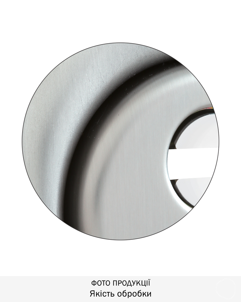 Обробка матова нержавіюча сталь, має холодний сталевий відтінок із матовою поверхнею, що царапана щіткою.