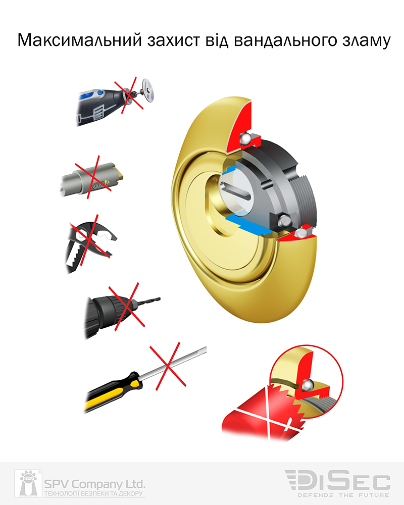 - Для захисту від свердління додатково в отвори кріплення броненакладки встановлюються загартовані кульки.