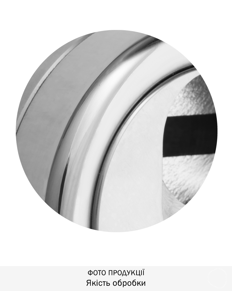 Обробка хром полірований. Одна із найпоширеніших та найстійкіших обробок. Має поліровану дзеркальну поверхню сріблястого кольору. Добре виглядає як на темних так і на світлих дверях всіх кольорів. Підходить до всіх стилів інтер’єрів.