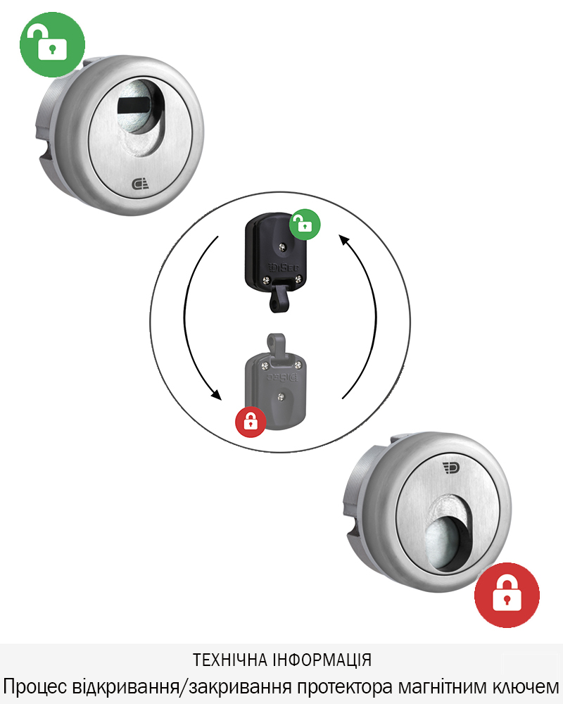 Захисний протектор моделі 3G2,з магнітним ключем призначений для захисту циліндрового механізму стандарту DIN, від зламу.