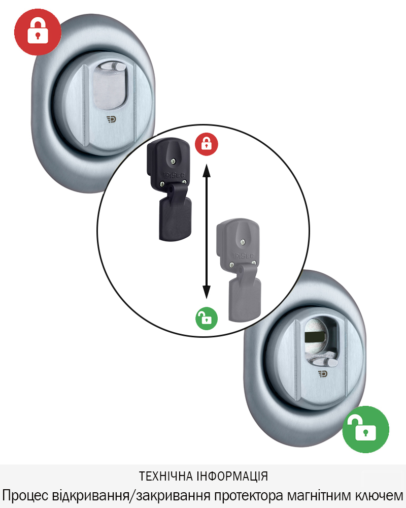 Захисний магнітний щиток специфікації 4GN2MB, захищає ключний отвір від потрапляння сторонніх предметів, вандалізму, підбору відмичок.Протектор захищає циліндровий механізм, стандарту DIN, від зламу.