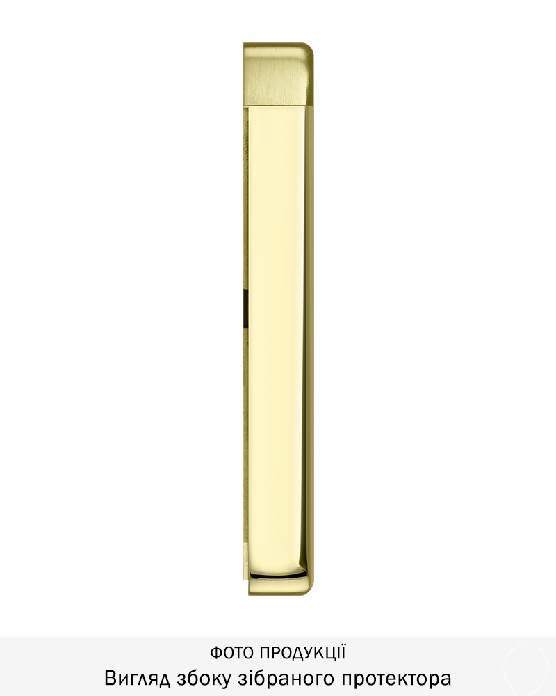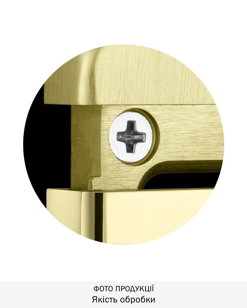 Обробка латунь PVD, має яскраво жовтий колір та поліровану поверхню. Обробка стійка до подряпин та впливу зовнішнього середовища. Найкраще виглядає на темних дверях, підходить до інтер’єрів у класичному стилі.