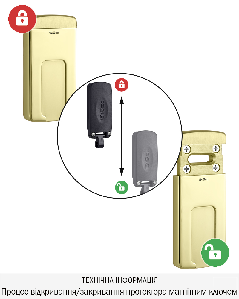 Захисний магнітний щиток моделі MG220MINI, захищає ключний отвір від потрапляння сторонніх предметів, вандалізму, підбору відмичок.Протектор для захисту сувальдного механізму, від зламу.