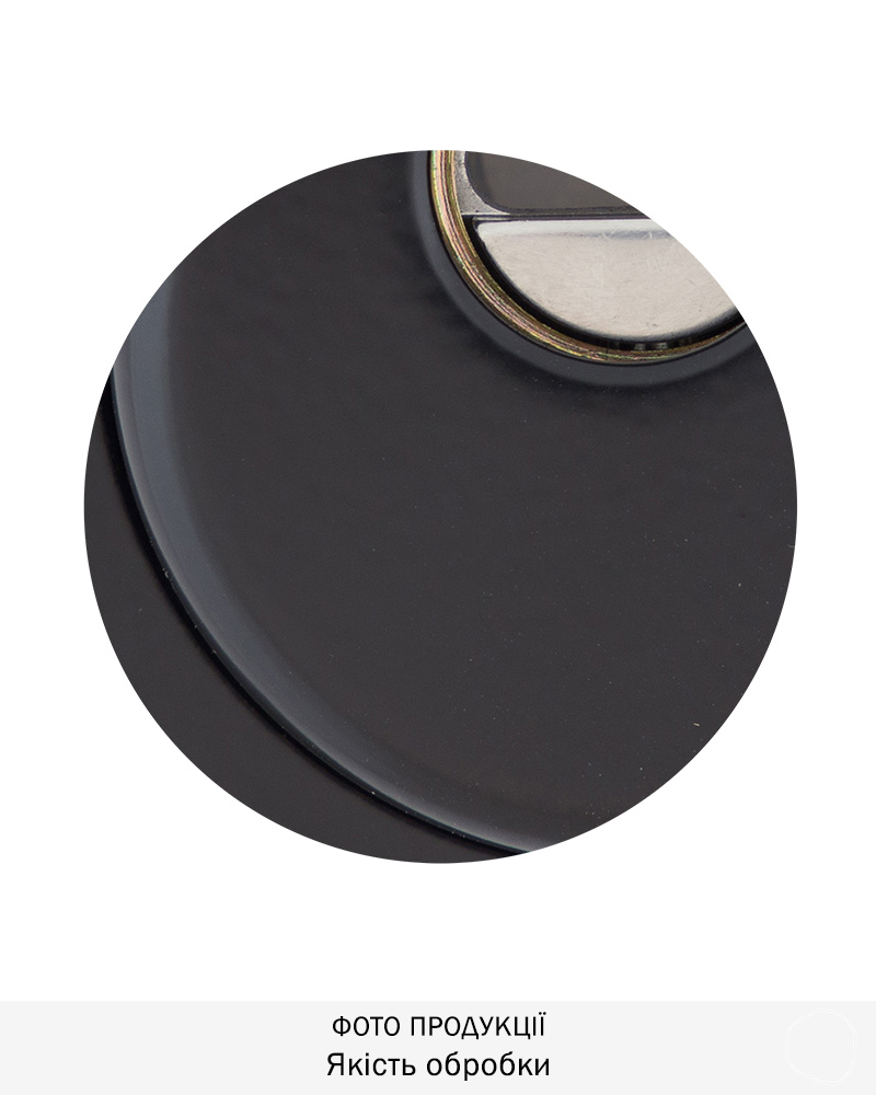 Обробка фарба чорна. Однорідна напівглянцева поверхня чорного кольору. Найкраще виглядає на дверях світлого та сірого кольорів. Для інтер’єрів у сучасних та класичних стилях.