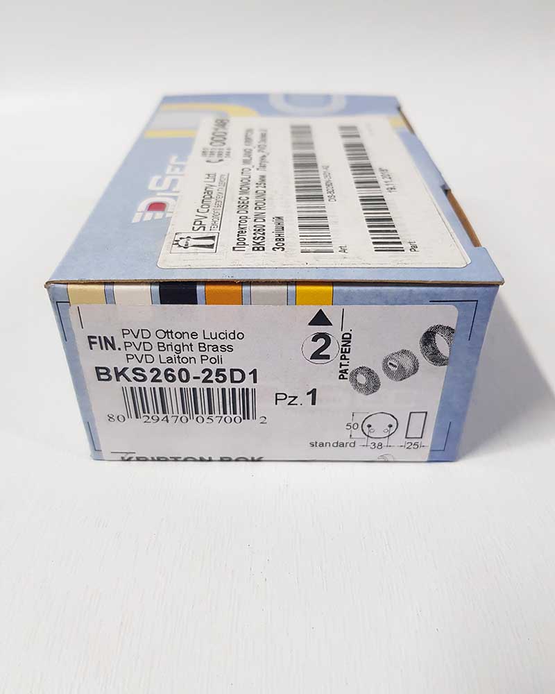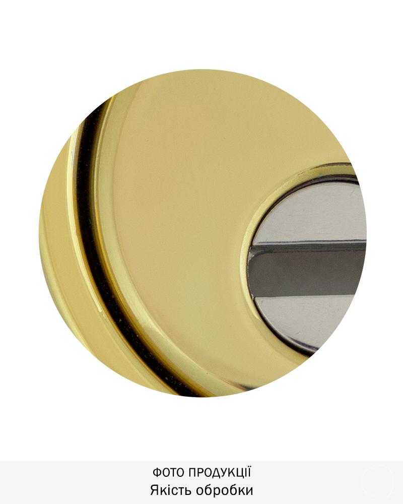 Обробка латунь PVD, має яскраво жовтий колір та поліровану поверхню. Обробка стійка до подряпин та впливу зовнішнього середовища. Найкраще виглядає на темних дверях, підходить до інтер’єрів у класичному стилі.