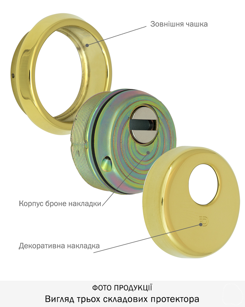 -Захисний протектор вкручується в зовнішню“юбку” та фіксується гужоном.