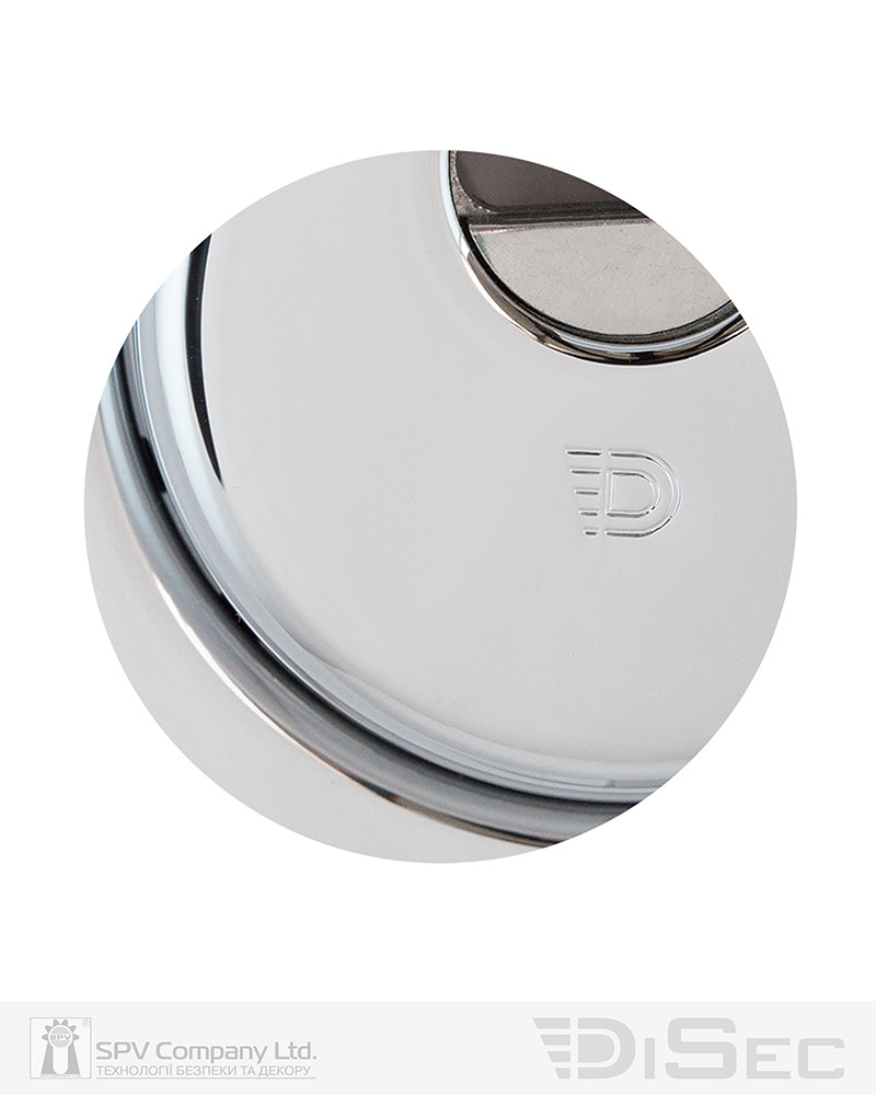Обробка хром полірований. Одна із найпоширеніших та найстійкіших обробок. Має поліровану дзеркальну поверхню сріблястого кольору. Добре виглядає як на темних так і на світлих дверях всіх кольорів. Підходить до всіх стилів інтер’єрів.