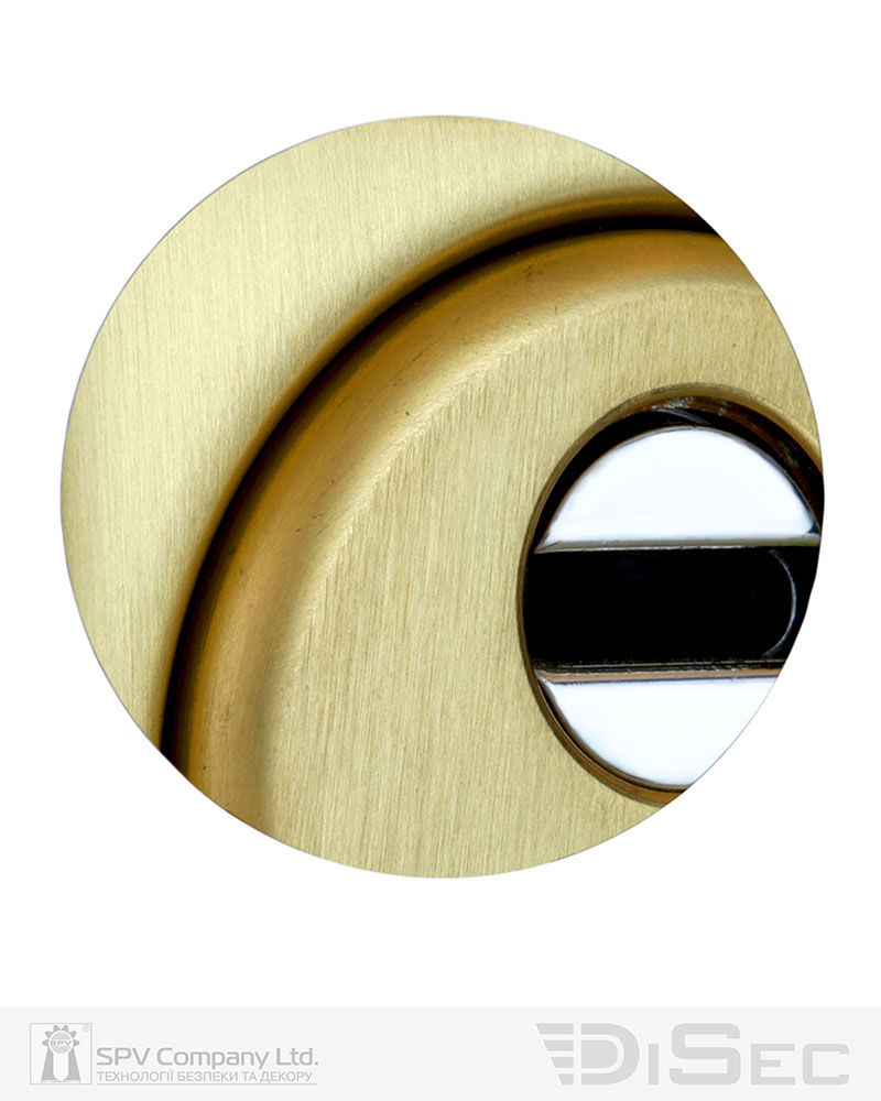 Обробка латунь матова, має золотисто-жовтий колір натуральної латуні та матову поверхню, яка оброблена щіткою. Найкраще виглядає на темних дверях, підходить до інтер’єрів у класичному стилі.
