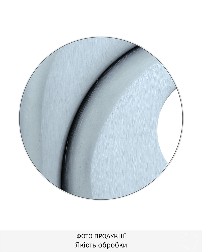 Обробка хром матовий. Має матову поверхню, що царапана щіткою, сріблясто-сірого кольору. Найкраще виглядає на дверях червонуватих відтінків – від світлого кремового до темнокоричневого шоколадного. Для інтер’єрів у сучасних та класичних стилях.
