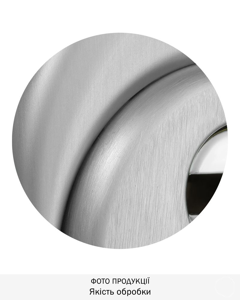 Обробка нержавіюча сталь матова. Має холодний сталевий відтінок із матовою поверхнею, що царапана щіткою. Найкраще підходить для застосування у сучасних інтер’єрах.