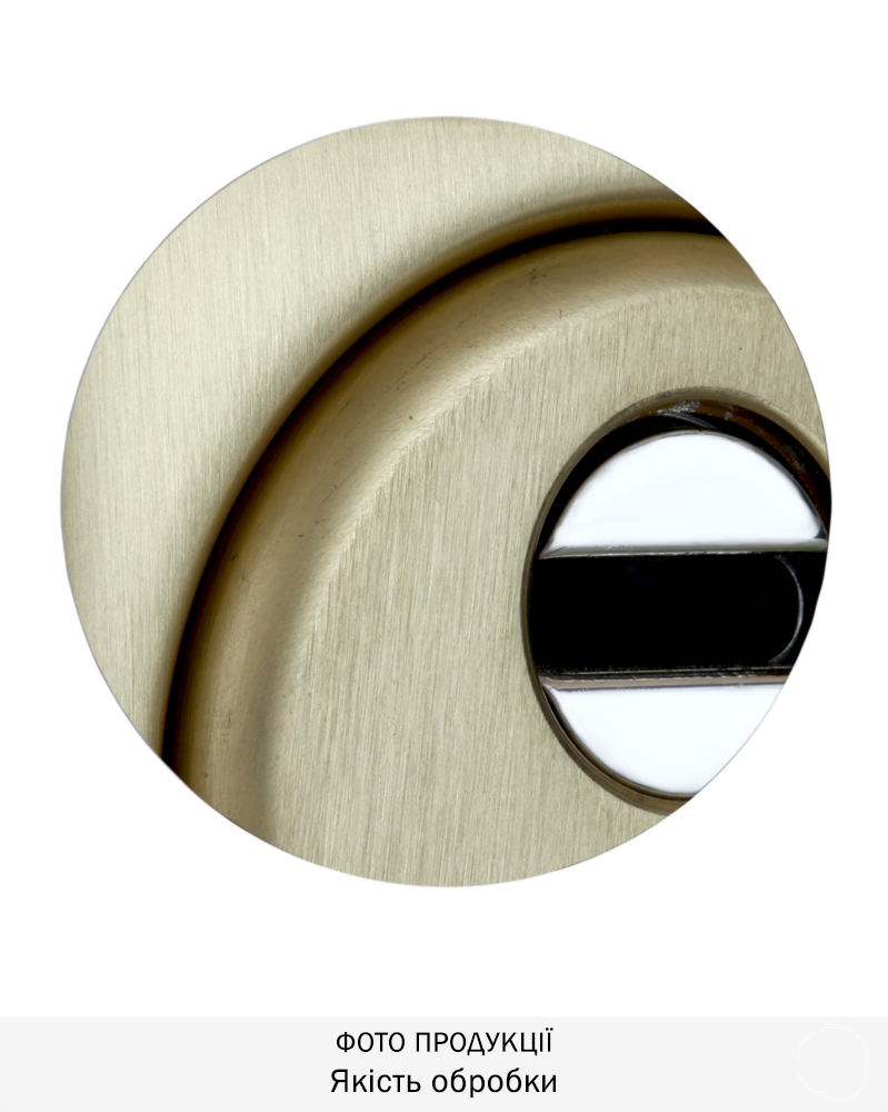 Обробка латунь матова, має золотисто-жовтий колір натуральної латуні та матову поверхню, яка оброблена щіткою. Найкраще виглядає на темних дверях, підходить до інтер’єрів у класичному стилі.
