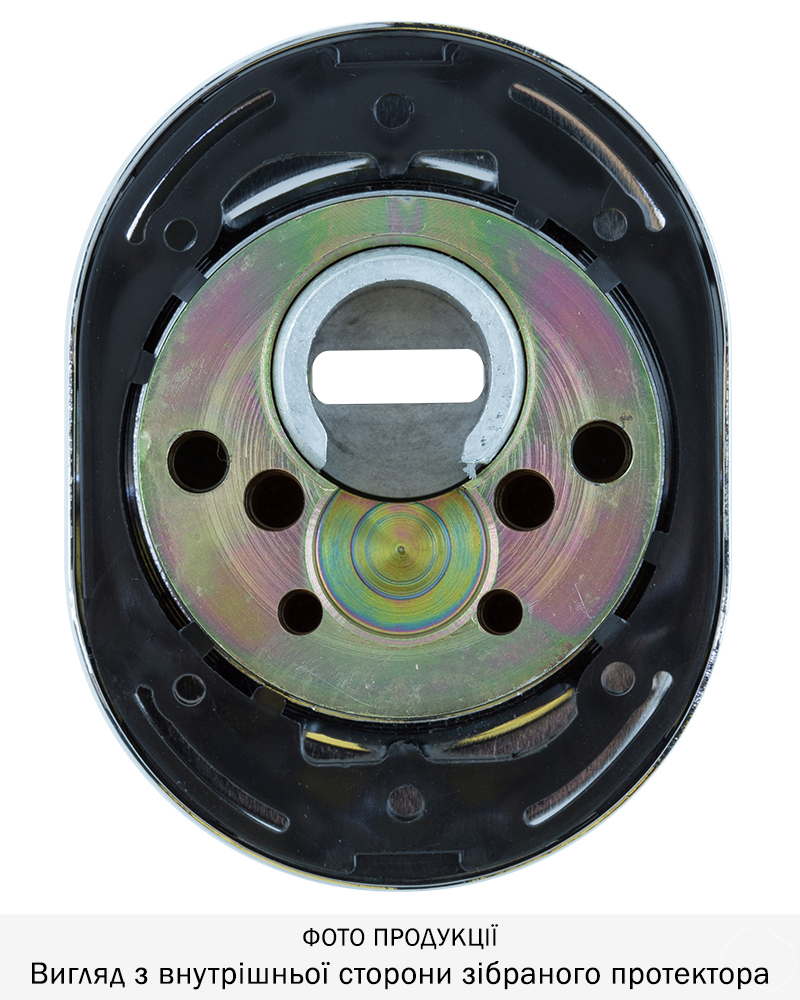 -Лицьова сторона протектора має рифлену поверхню, яка перешкоджає застосуванню фрез для висвердлювання.