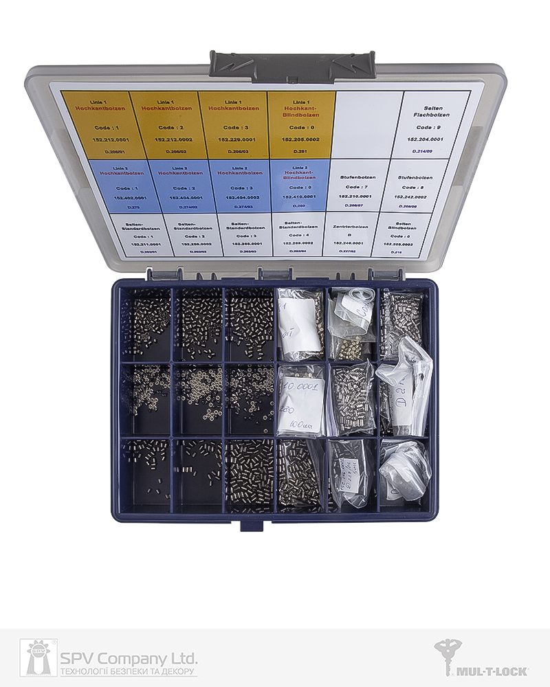 Набір пінів для збирання і перекодування замкових циліндрів KESO. Поставляється в зручному для зберігання кейсі.
