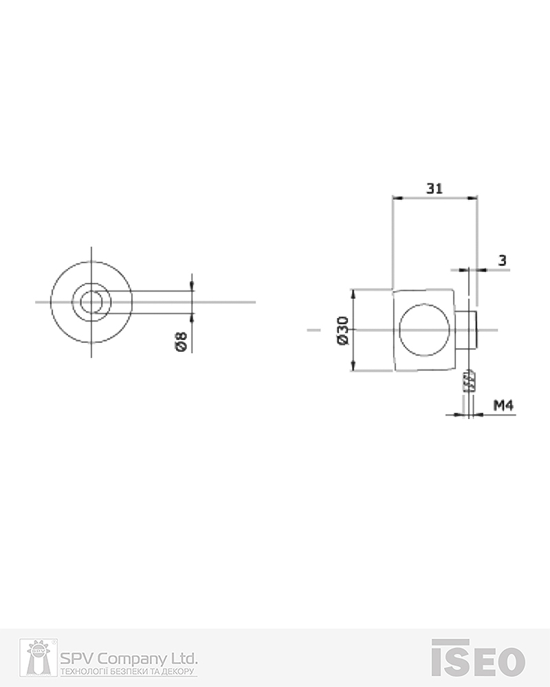 Тумблер ISEO круглий нікель сатин для циліндрів DIN стандарта італійського типу, з довгим штоком.