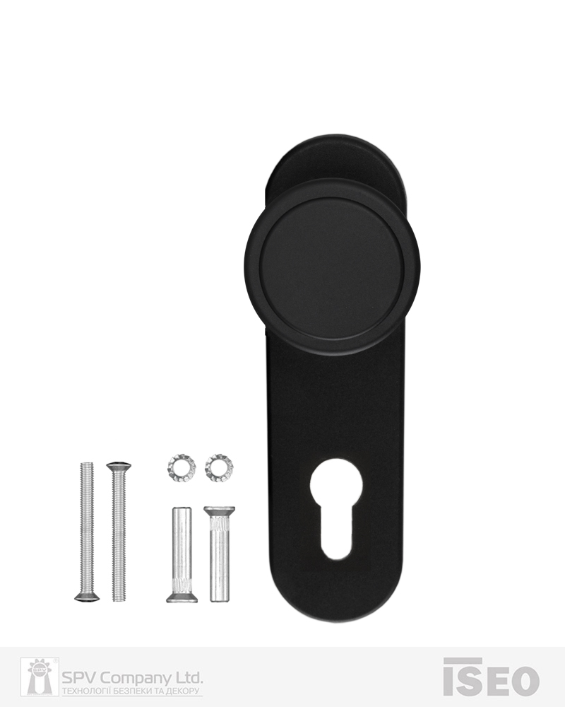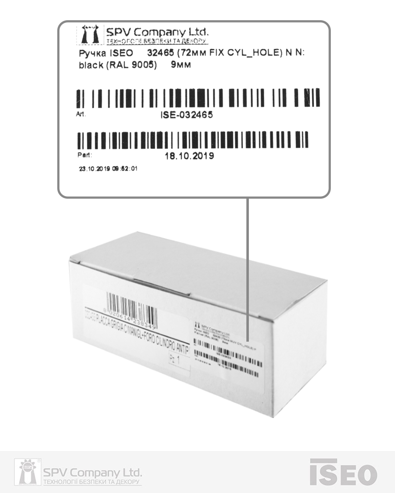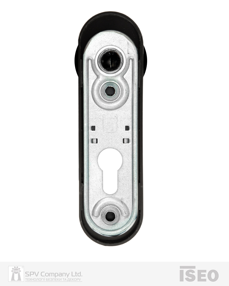 Ручка дверна ISEO 32465 для застосування на зовнішній частині одностулкових або активній стулці двостулкових дверей евакуаційних виходів (в тому числі, й протипожежних) зі встановленими врізними замками ISEO або інших виробників з панік функцією E та пристроями антипаніки врізного типу, такими як TESA Global1E, 1970, LITE1E або інших виробників (за умови сумісності за кріпленням)