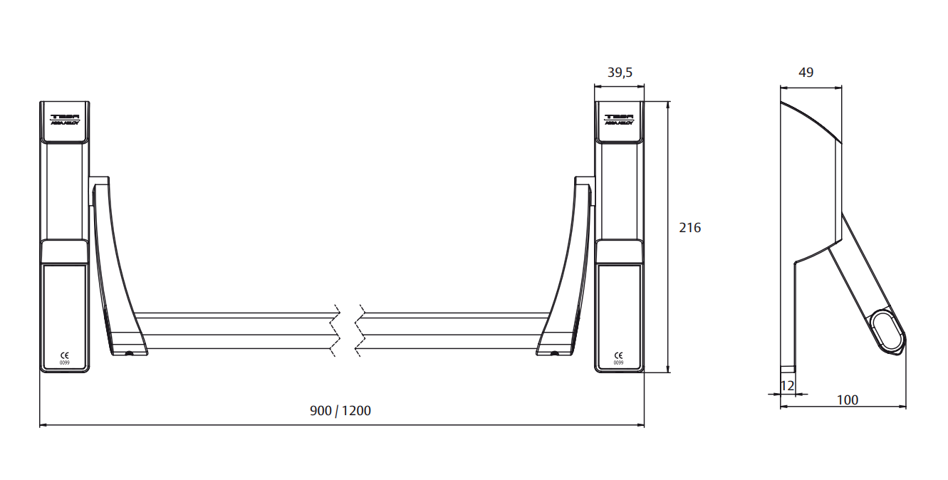 • Довжина: штанги -1075 мм, загальна (разом з механізмами) – 1200 мм