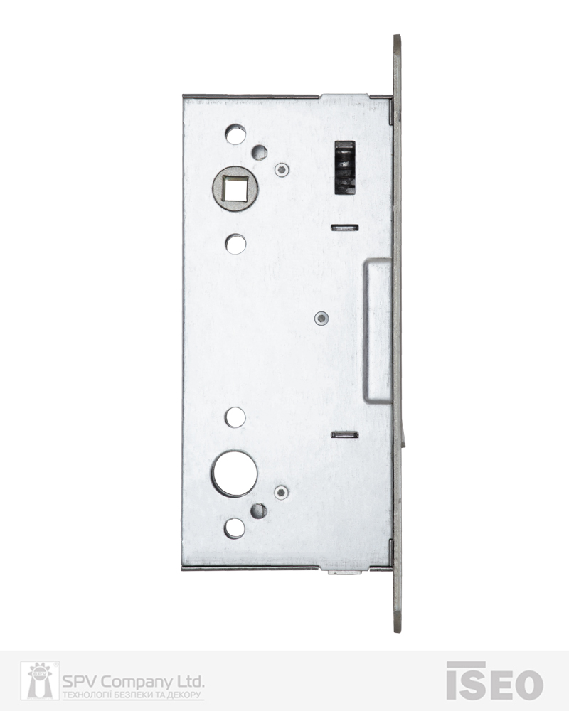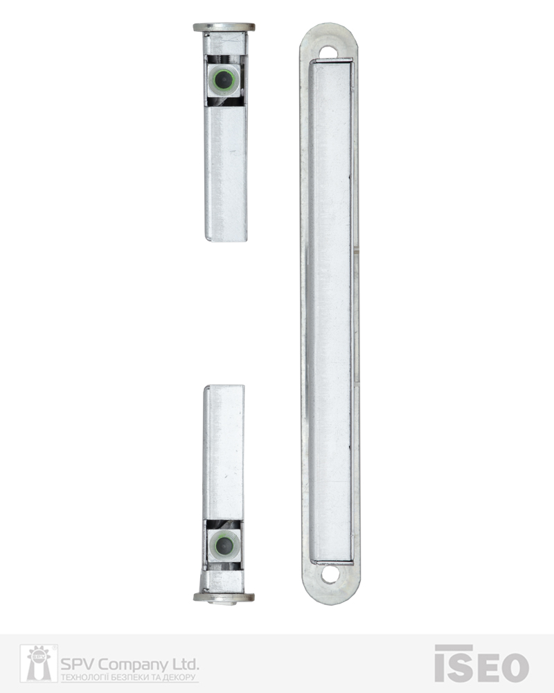 Замок врізний ISEO 212700654 призначений для встановлення в пасивну стулку двостулкових дверей евакуаційних виходів разом з пристроями антипаніки врізного типу TESA 1970 та QUICK1E. Виконує функції контр-замка, розблокуючі пасивну стулку дверей і штовхає защіпку основного замку в його корпус