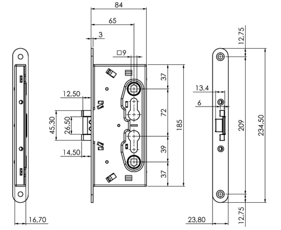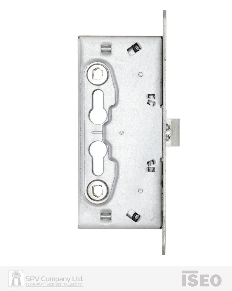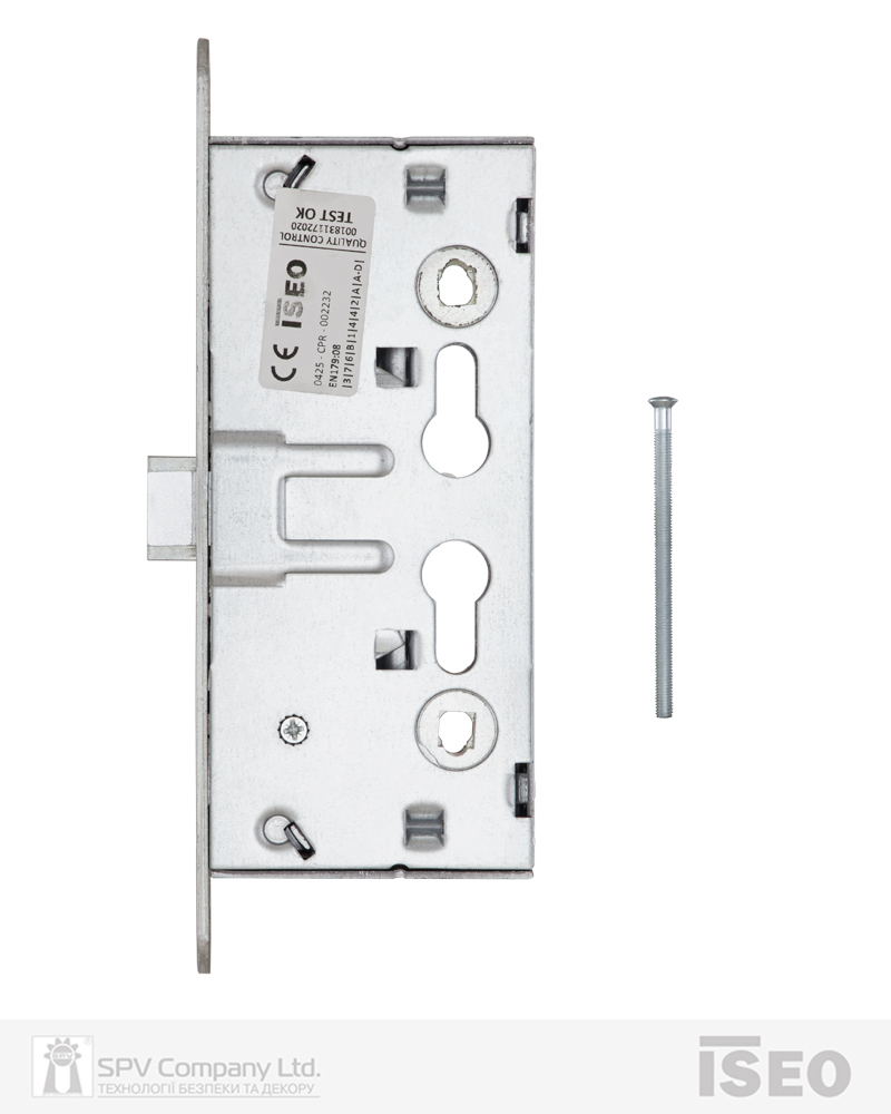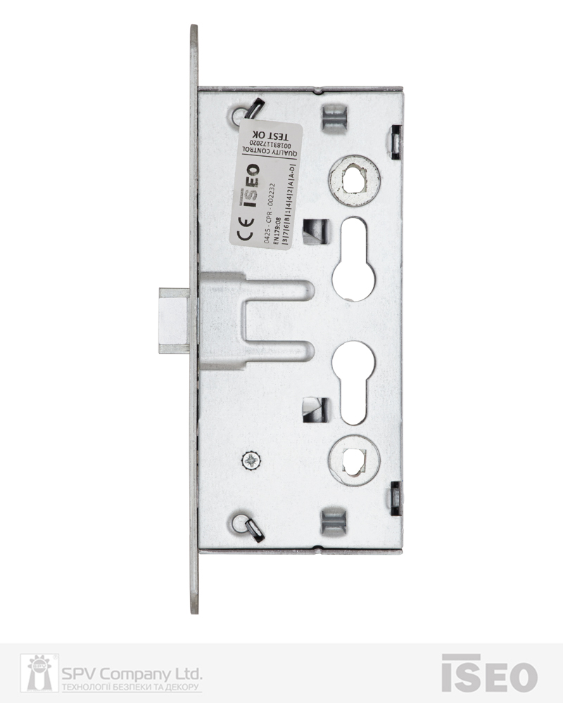 Замок врізний ISEO DIN 214140654 з панік функцією D або E призначений для встановлення в одностулкові двері евакуаційних виходів (в тому числі, й на вогнетривкі) разом з пристроями антипаніки врізного типу.