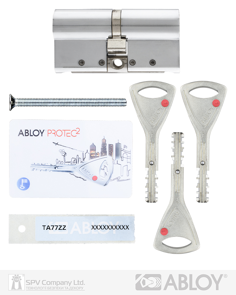Патентована ключова платформа PROTEC2. Клас Extra Security. Дисковий механізм забезпечує надійну роботу в екстремальних умовах. Корпус підсилений сталевою платою. Функція AWS (Система антизносу) - сукупність елементів у циліндрі та ключі, які мінімізують ефект зносу при роботі циліндра. Захист від висвердлювання – перший диск циліндра з загартованої сталі. Функція "Emergency" (надзвичайна подія) - надає можливість відкрити циліндр ключем з зовнішньої сторони у разі, якщо з внутрішньої сторони в нього вставлено ключ. 2R-технологія нарізки ключа на двох радіусах. Новий унікальний інтерактивний елемент особливої кулькоподібної форми для додаткового захисту від несанкціонованого дублювання ключів. Комплектація: циліндр, 3 ключа, персональна картка+ персональна кодова наліпка, кольорові вставки в ключ, сталевий гвинт М5х85.