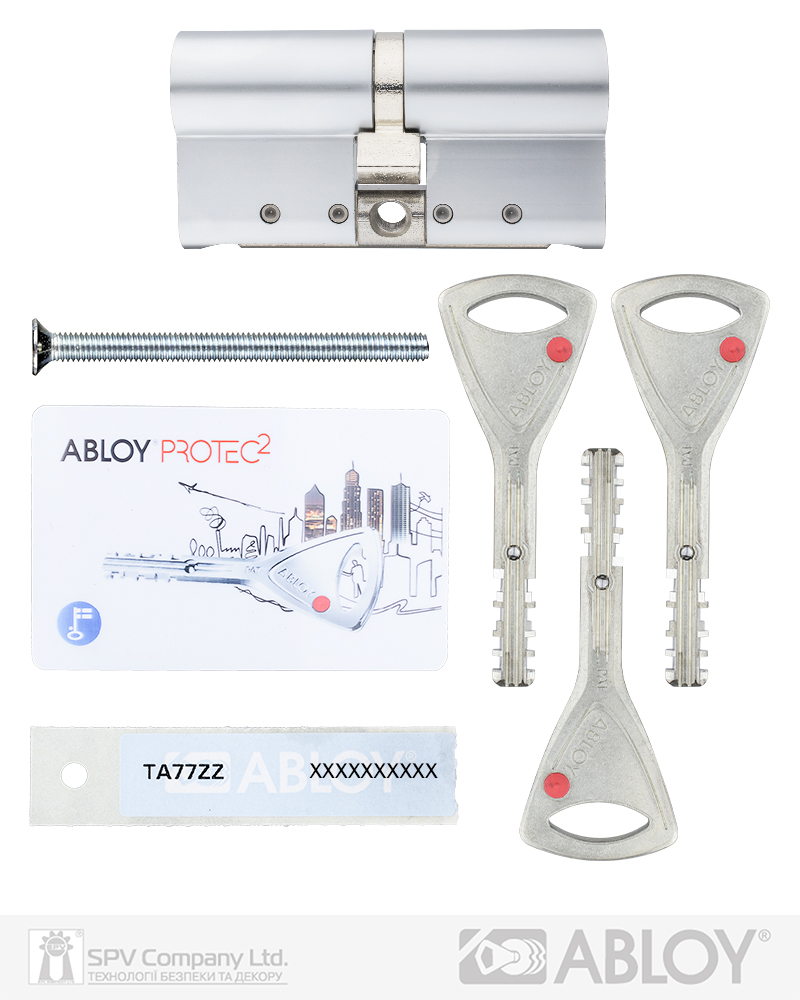Патентована ключова платформа PROTEC2. Клас Extra Security. Дисковий механізм забезпечує надійну роботу в екстремальних умовах. Корпус підсилений сталевою платою. Функція AWS (Система антизносу) - сукупність елементів у циліндрі та ключі, які мінімізують ефект зносу при роботі циліндра. Захист від висвердлювання – перший диск циліндра з загартованої сталі. Функція "Emergency" (надзвичайна подія) - надає можливість відкрити циліндр ключем з зовнішньої сторони у разі, якщо з внутрішньої сторони в нього вставлено ключ. 2R-технологія нарізки ключа на двох радіусах. Новий унікальний інтерактивний елемент особливої кулькоподібної форми для додаткового захисту від несанкціонованого дублювання ключів. Комплектація: циліндр, 3 ключа, персональна картка+ персональна кодова наліпка, кольорові вставки в ключ, сталевий гвинт М5х85.
