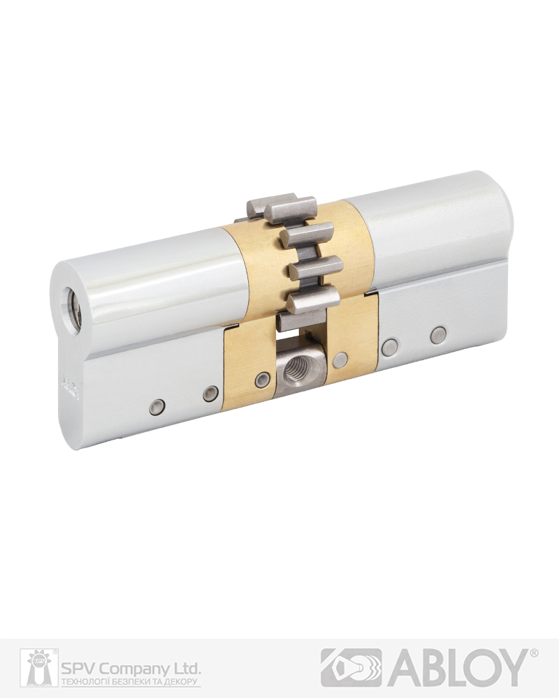 Захист від висвердлювання – перший диск циліндра з загартованої сталі. Функція ""Emergency"" (надзвичайна подія) - надає можливість відкрити циліндр ключем з зовнішньої сторони у разі, якщо з внутрішньої сторони в нього вставлено ключ. 2R-технологія нарізки ключа на двох радіусах. Новий унікальний інтерактивний елемент особливої кулькоподібної форми для додаткового захисту від несанкціонованого дублювання ключів.