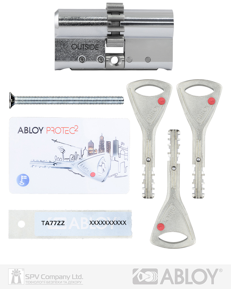 Комплектація: циліндр, 3 ключі, персональна картка+ персональна кодова наліпка, кольорові вставки в ключ, сталевий гвинт М5х85.
