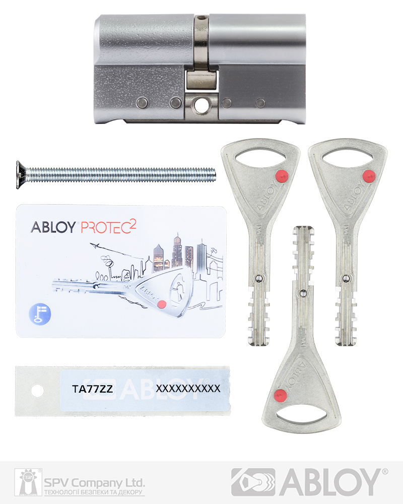 Комплектація: циліндр, 3 ключі, персональна картка+ персональна кодова наліпка, кольорові вставки в ключ, сталевий гвинт М5х85.