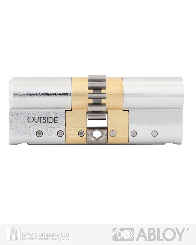 Захист від висвердлювання – перший диск циліндра з загартованої сталі. Функція ""Emergency"" (надзвичайна подія) - надає можливість відкрити циліндр ключем з зовнішньої сторони у разі, якщо з внутрішньої сторони в нього вставлено ключ. 2R-технологія нарізки ключа на двох радіусах. Новий унікальний інтерактивний елемент особливої кулькоподібної форми для додаткового захисту від несанкціонованого дублювання ключів.