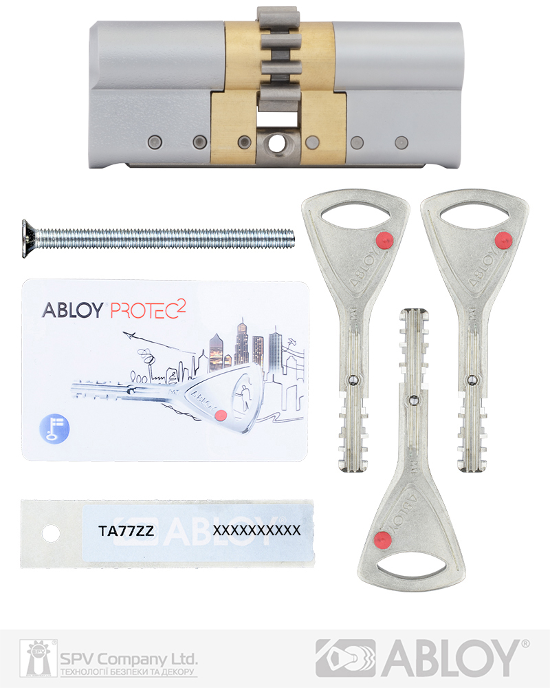 Комплектація: циліндр, 3 ключі, персональна картка+ персональна кодова наліпка, кольорові вставки в ключ, сталевий гвинт М5х85.