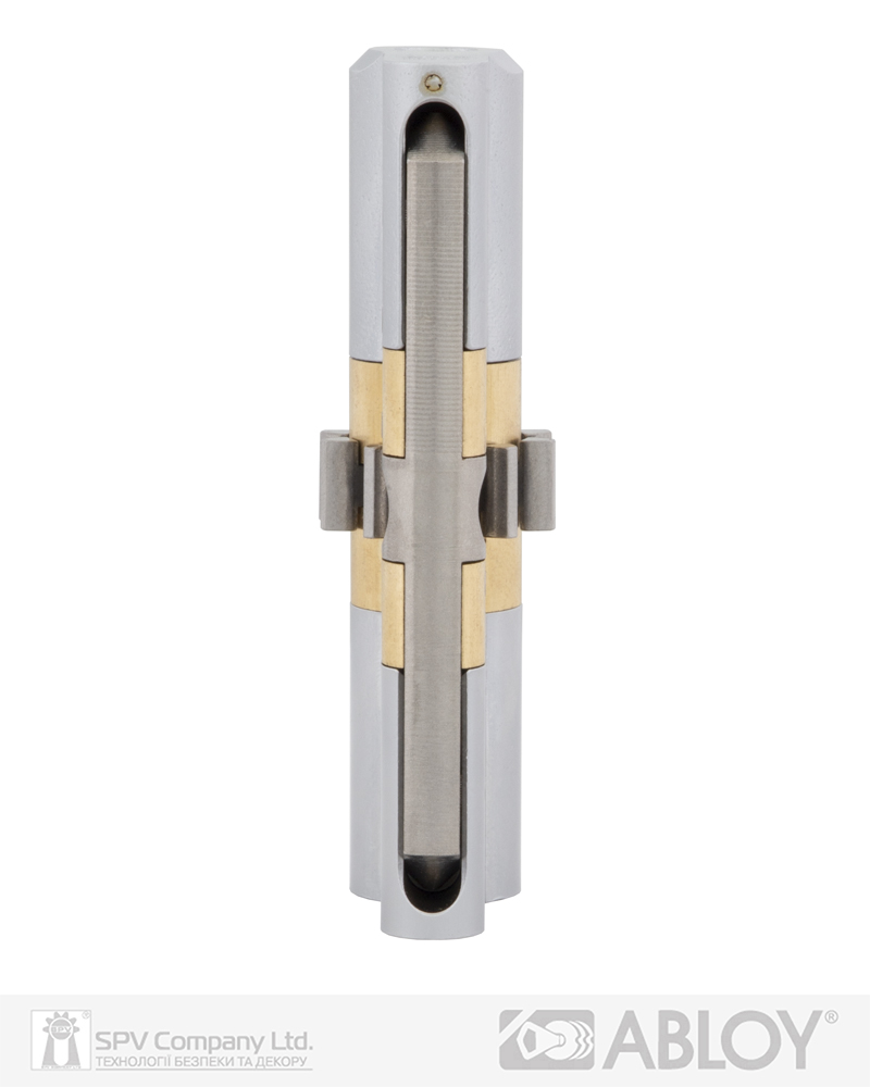 Захист від висвердлювання – перший диск циліндра з загартованої сталі. Функція ""Emergency"" (надзвичайна подія) - надає можливість відкрити циліндр ключем з зовнішньої сторони у разі, якщо з внутрішньої сторони в нього вставлено ключ. 2R-технологія нарізки ключа на двох радіусах. Новий унікальний інтерактивний елемент особливої кулькоподібної форми для додаткового захисту від несанкціонованого дублювання ключів.