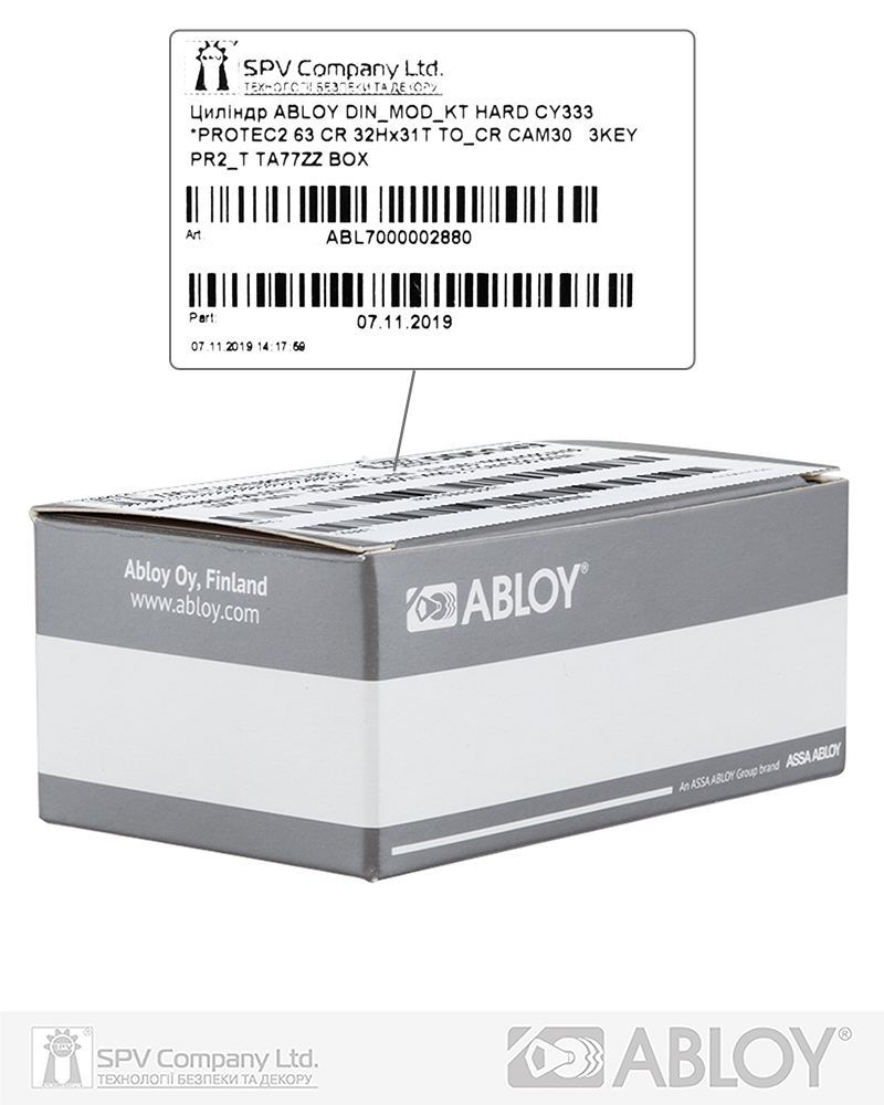 Комплектація: циліндр, 3 ключі, персональна картка+ персональна кодова наліпка, кольорові вставки в ключ, сталевий гвинт М5х85.