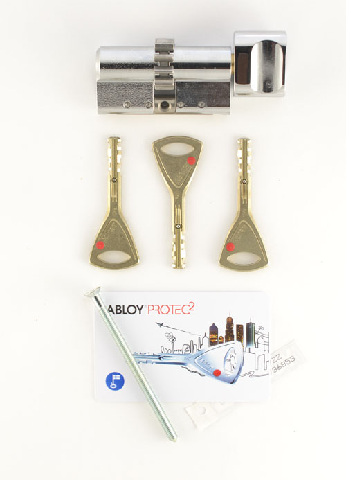 Комплектація: циліндр, 3 ключі, персональна картка+ персональна кодова наліпка, кольорові вставки в ключ, сталевий гвинт М5х85.